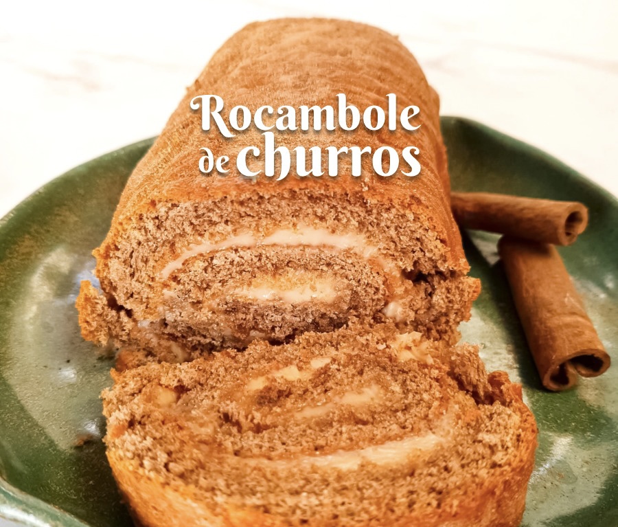 | Rocambole com recheio de doce de leite e côco, cobertura de chocolate 70% |